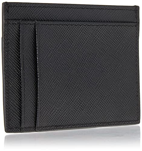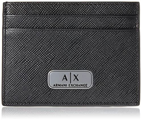 Armani Exchange Plate Logo Saffiano Leather Card Holder, Black